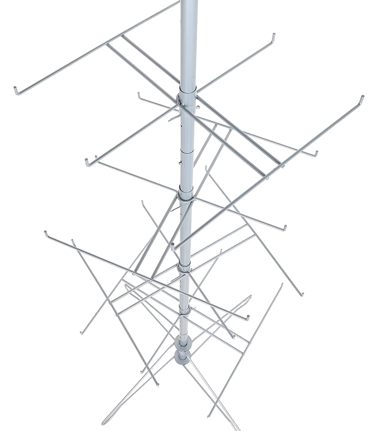 Additional features include four rotating tiers with six 6" long pegs on each tier.